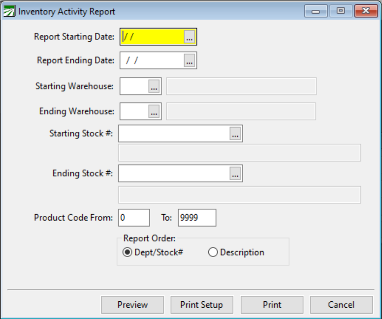 To specify the date range for inventory transactions reported, enter the starting and ending dates.