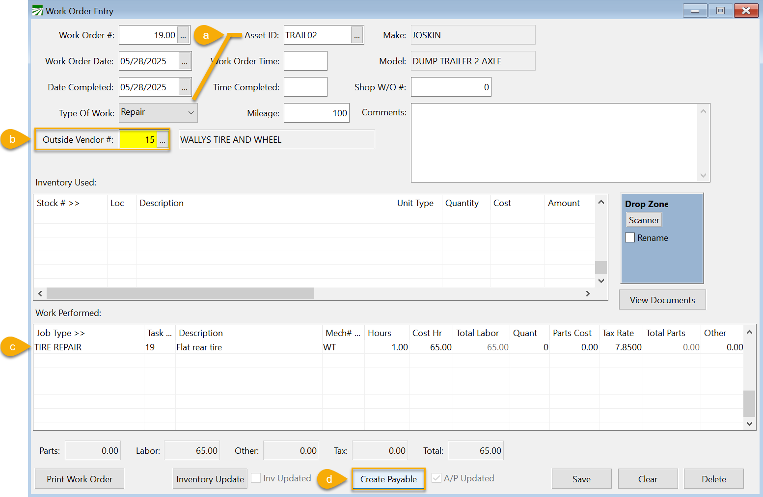 Work Order & AP Invoice (Outside Repair & Maintenance)