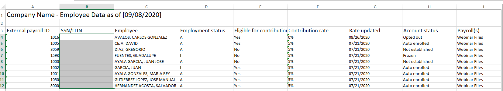 The Import Employee Status is designed for the download “Employee Data” available from CalSavers & OregonSaves.