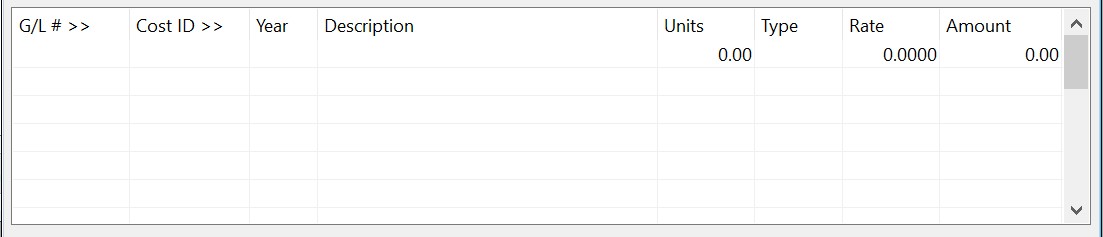 If applicable, enter the rate per unit here.  This entry is optional, check your program setup to see if it is enabled.  If you enter both the units and the rate, they will be multiplied out and the result will appear in the Amount column.