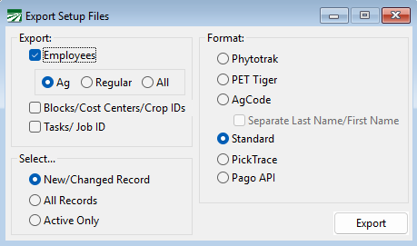 There are two different import options available. The first is used solely for importing from the Handtrak data collection system. The other is used for importing from all other data collection systems, including DataTrack, PET TIGER, PhytoTrack, and all other time clock systems. When the data collection option is enabled, you will need to select the system that you are using: