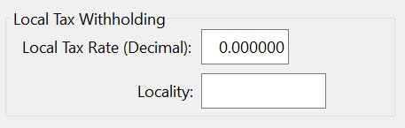 Note These entries work in connection with the entries on the State Tax Rates > Local Tax Settings tab > Local Tax Settings. You will need to select the Use Local or State Rate From Employee File box in order to use these entries.