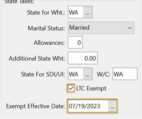 When the effective date is in the current quarter and LTC tax has already been withheld, the program will refund any LTC tax withheld in the current quarter on the employee’s next check. This may be the case if the ESD is slow processing exemptions and issues a date with a retroactive date or an employee doesn’t provide you with the letter before the effective date.