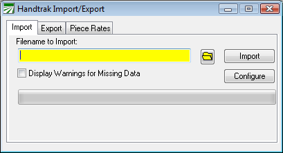 When you select the Import Data From Handtrak option from the Daily Payroll menu, the following window will open: