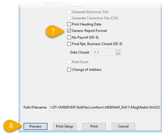 Select this box if you want to print a generic report that can be used to fill in your state form. For many states, the payroll system will print on the state form, but if that is not available for your state, you can print the generic report to assist you in filling out the state form.