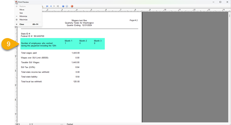In the PDF preview of the report, go to page 2 and look for the number of employees who worked during the pay period.