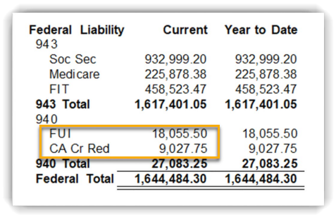 Note Once the accrual is turned on, the credit reduction tax will only start accruing with the next payroll. If you would like to make a journal entry to accrue the year-to-date anticipated tax, you may run the Wage and Tax Summary to get the additional tax. You would then credit your 940-liability account to increase the liability by this amount and debit your payroll tax expense account.