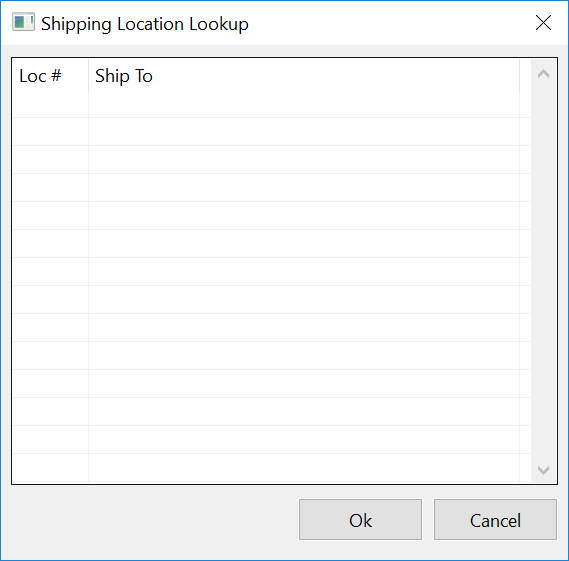 Each customer account has a default customer location of 1, which is “SAME”. If you have entered different ship to address for the customer account, you can enter the ship to location number here, or click on the lookup button or press [F4] to get a list of shipping locations to choose from.