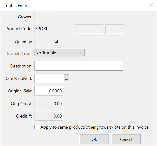 For buy/sell sales, enter the vendor’s invoice number here. When the vendor invoice is entered through the Produce Purchases window, the program will be able to find the sales for that invoice.