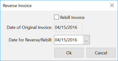 If the invoice that you want to reverse has a payment, you will need to rebill it. The program will transfer the payment from the original invoice to the rebilled invoice.