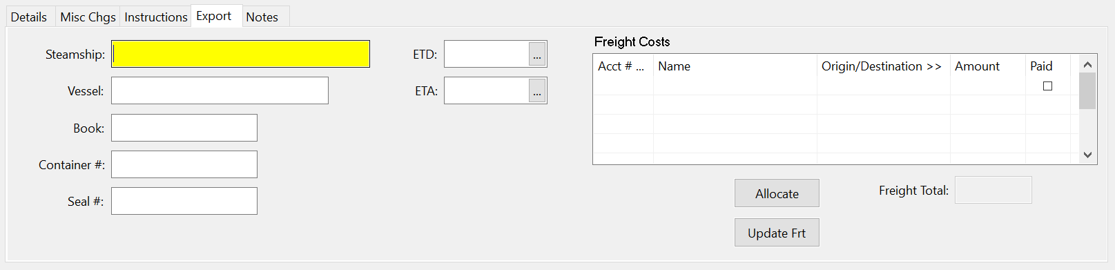 When you select Delivered for the freight terms, you can enter the total freight amount here. As you enter the line items, you can enter the freight amount for each line (if you have already calculated what the amounts should be).