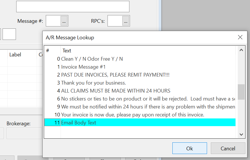 In these cases, the message number will not show in the Message entry on the Enter/Edit Customer Invoice window, but it will print on the invoice. Preview invoices to ensure your message is printing correctly.