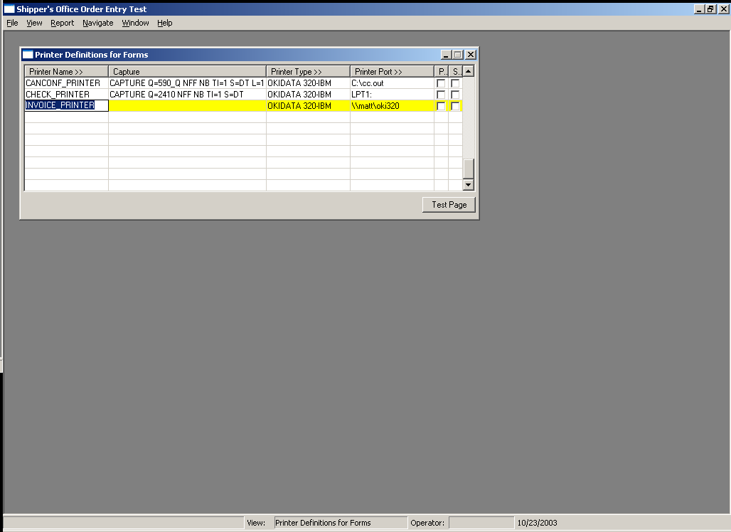 Add an entry with the printer name “INVOICE_PRINTER”. The program looks specifically for this entry when printing final invoices to determine the printer to use.