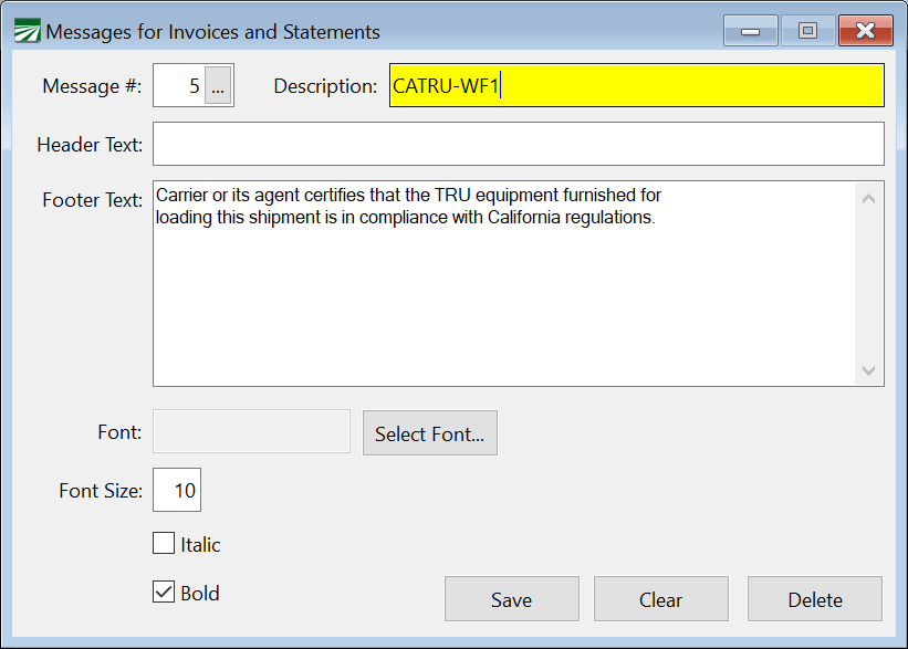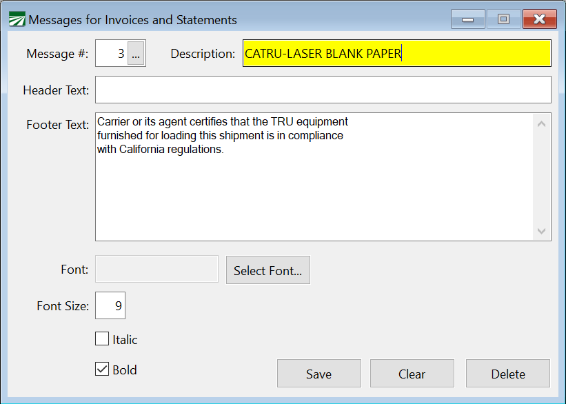 If you would like to set up the message above on your bill of ladings, follow these steps:
