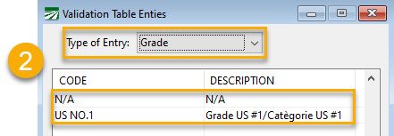 If you are using grades in the Case Label entry window, you must edit the grade descriptions to add the French translation. To do this, go to Case Labeling > Setup > Validation Table Entries. From the Type of Entry drop-down menu, select Grade. You can then edit or add to the list of grades.