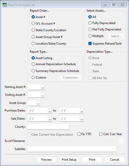 Select which assets you want to include on the list based on whether or not the assets are fully or partially depreciated.