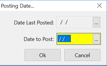 The last date that the transactions were posted to (if any) will be displayed, and you simply need to enter the date to post the transactions to.