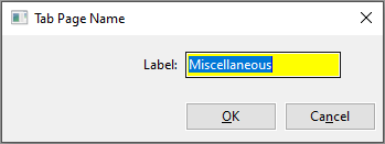 In the Tab Page Name window that opens, enter Miscellaneous in the Label entry.