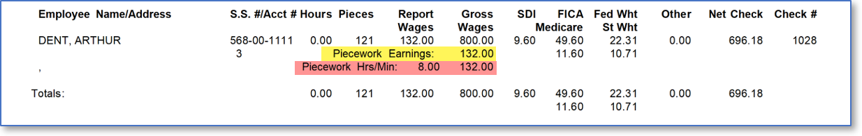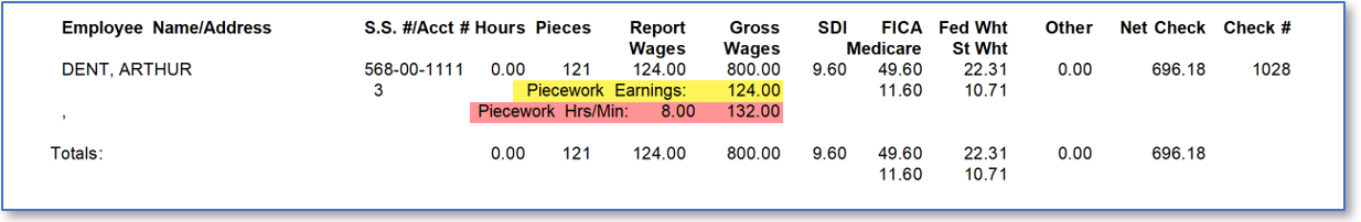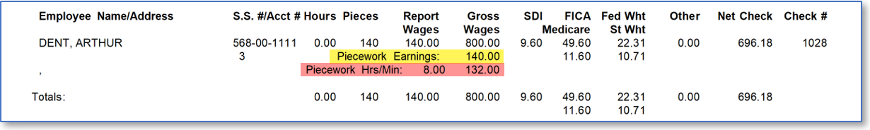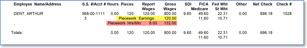 When verification is done on a Weekly basis, the employee must make at least $660 for a 40-hour work week. An employee might make less than $132 in piecework wages on a single day, but if the employee makes more than $132 in piecework wages on another day and it is enough to cover the shortage on the other day, no adjustment is created.