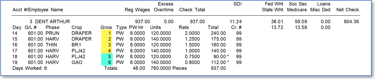 This means if an employee performs piecework labor for Growers A and B and does not earn minimum wage for Grower A, but earns more than minimum wage for Grower B, the overage on Grower B does not offset the shortage on Grower A. A minimum wage adjustment will be created based on only the piecework wages for Grower A.