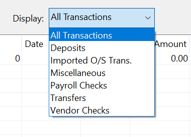 Use this to filter the type of transactions that are displayed. This is very useful if your statement lists transactions in different categories (e.g. Deposits, Checks, Electronic Transactions, etc.).