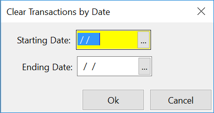 You can clear a block of transactions within a date range by clicking on Clear by Date. This will open the following window: