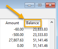 On the popup menu, select the Find option, then select Amount. The keyboard shortcut for this is [Ctrl]+[H]. Enter the amount you want to find, select the direction to look (relative to the currently highlighted line) and press [Enter]. The program will tell you if no transaction are found for that amount, otherwise it will highlight the transaction.