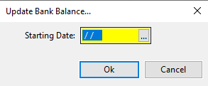 6) Make sure the bank balance is correct. The system will automatically keep the bank balance updated. However, it is possible for the bank balance to be incorrect if there is an unexpected error. To update the bank balance, go to Payables > Checkbook and click on the Balance column heading in the Checkbook Register window. This will open the Update Bank Balance…window. Enter a date equal to or prior to the last month you have reconciled.