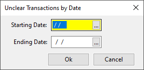 Select this option to unclear a previously cleared block of transactions within a date range. When this option is selected, a window will open where you can enter the date range for the transactions you want to unclear. See the image below.