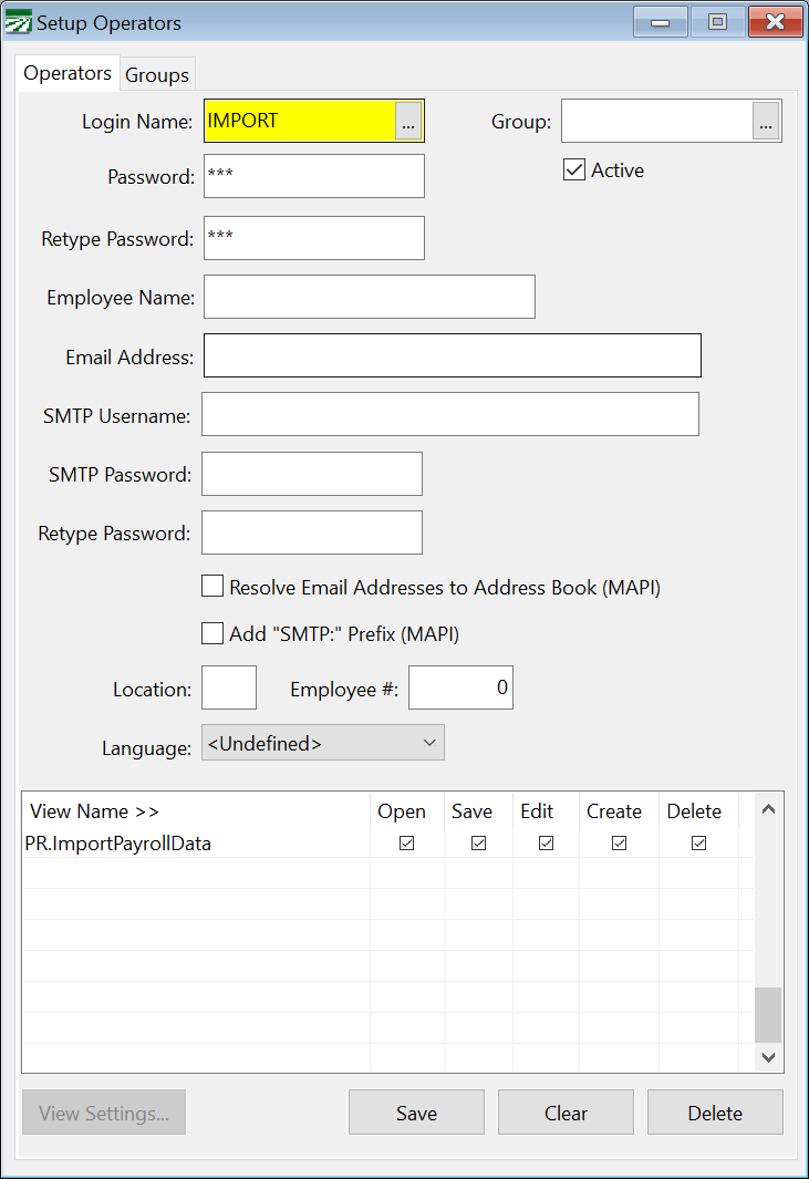 Payroll data is always imported directly into the Daily Payroll file. The entries will be imported with the operator name of the person who imported them. This means that if one person imported entries and someone else needs to view or edit them, the other person will need to enter the operator name of the person who did the import in the Viewing entry at the bottom right corner of the Daily Payroll window.