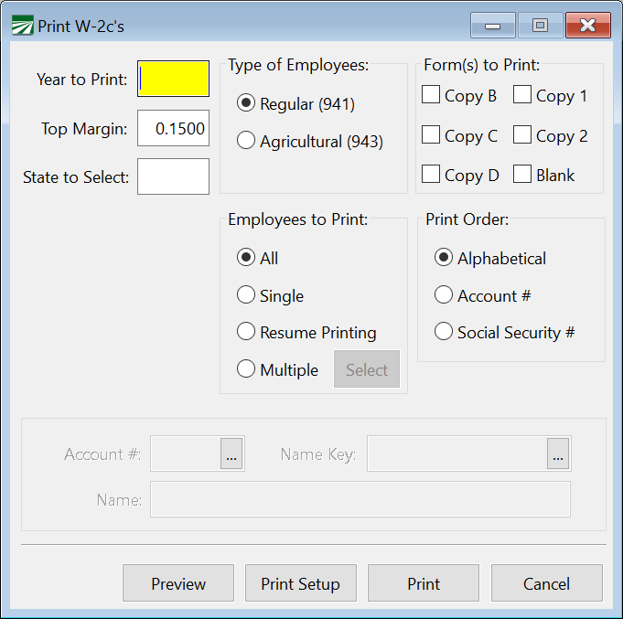 When you generate W-2’s the software records the current information printed on the W2’s. If you need to make a correction to a W2 AFTER printing the original: