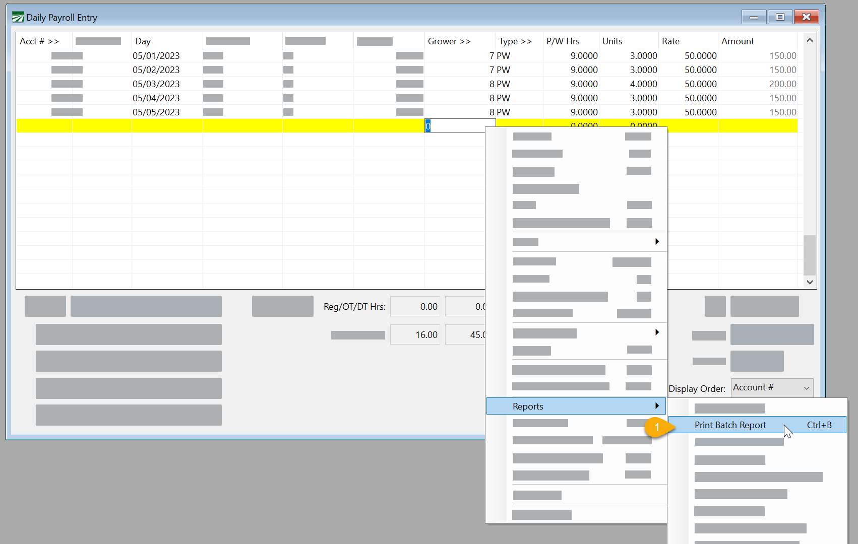 After all payroll has been entered in Daily Payroll Entry (including creating breaks), right-click in the grid and select Reports > Print Batch Report.