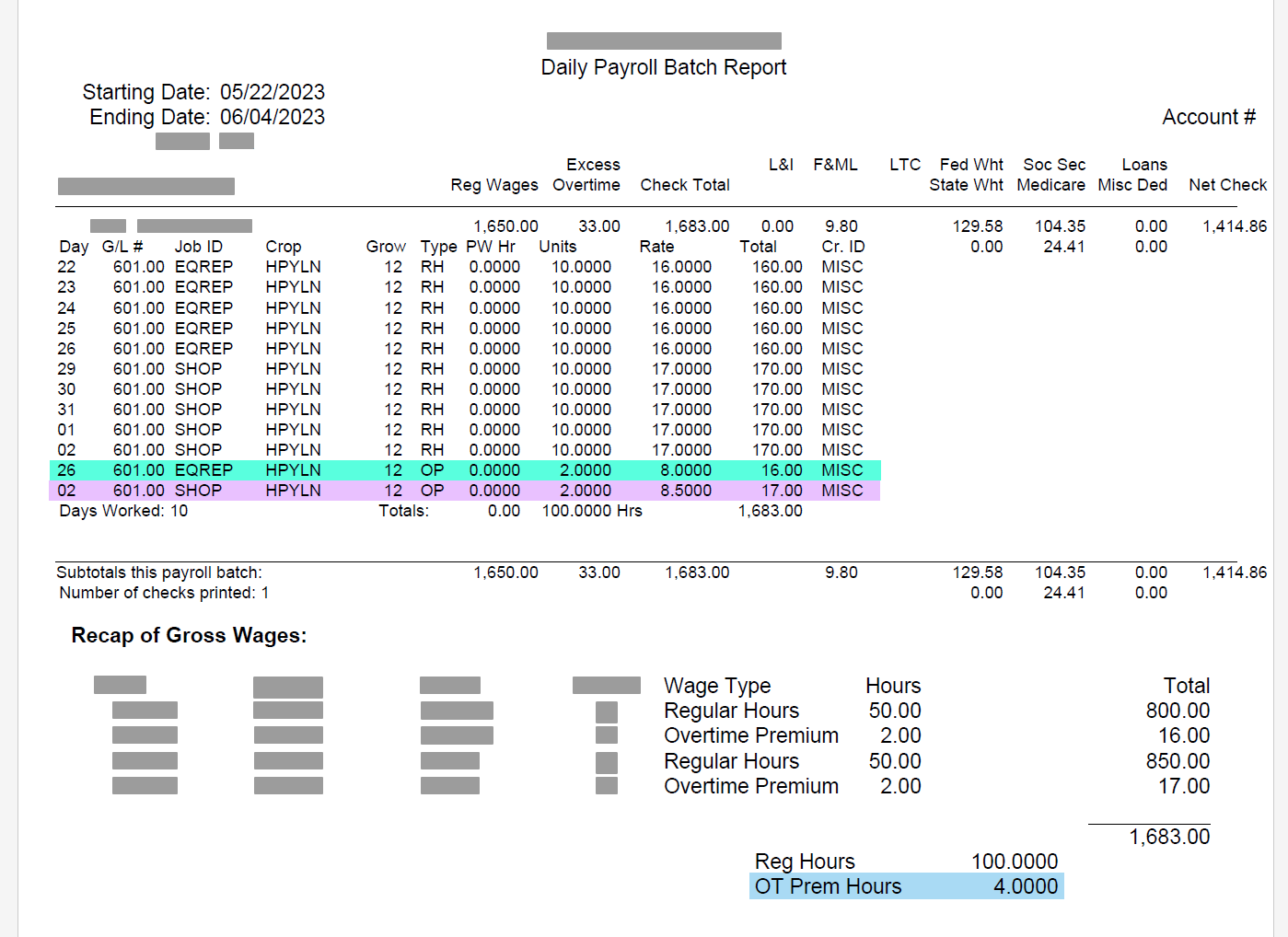 There are piecework wages in this check.